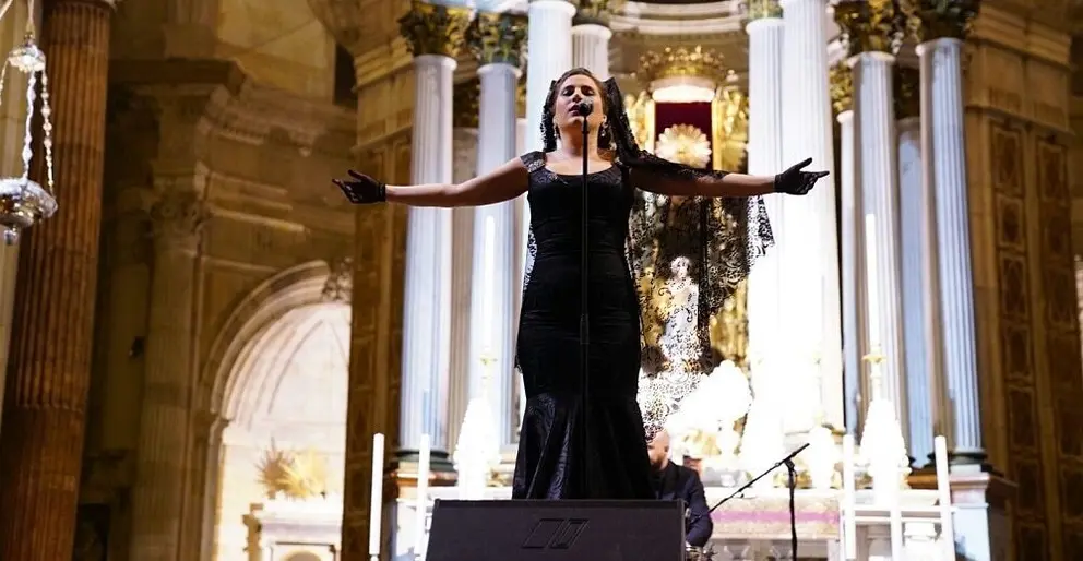 El viernes 5 de abril, a las 21.00 horas, en la Catedral de Cádiz, tendrá lugar, por segundo año consecutivo, el concierto Saeta y Mantilla, a cargo de la cantante y ex concursante del programa de Canal Sur Televisión, Se llama copla, Laura Gallego.