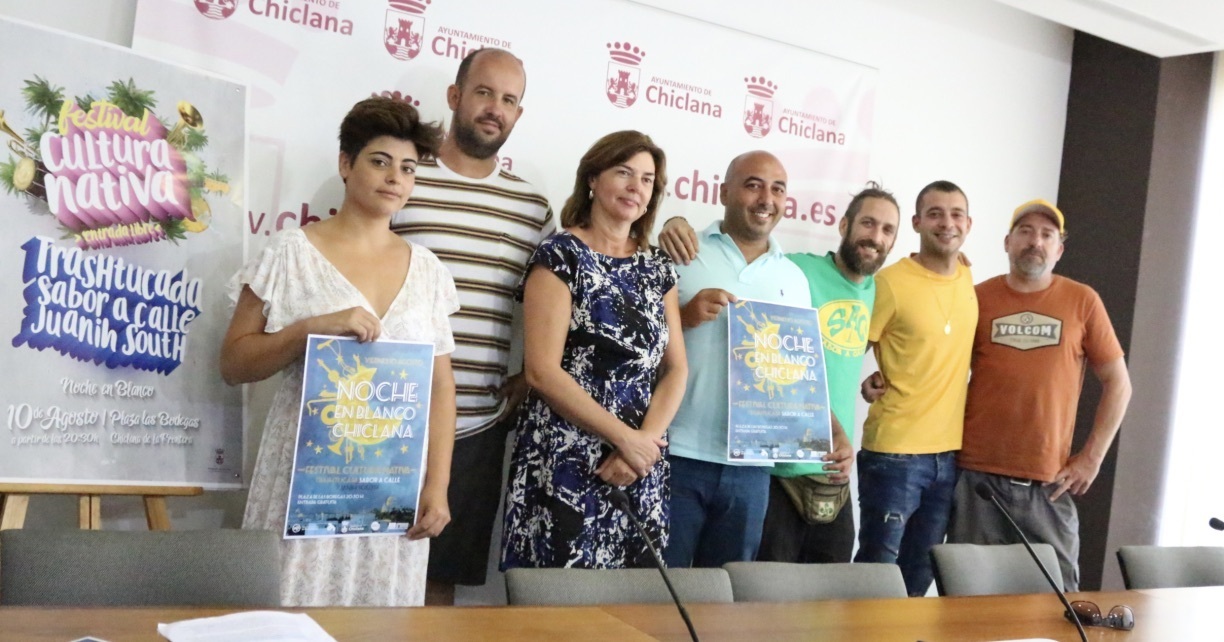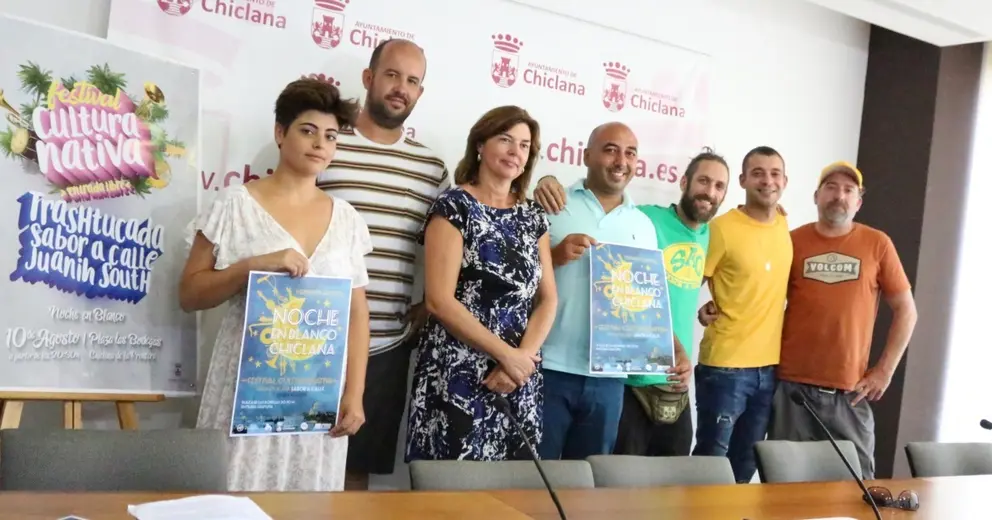 El delegado municipal de Fomento, Adrián Sánchez; la delegada municipal de Cultura, Pepa Vela; los representantes de Trashtucada, Juan Miguel Martínez y Roberto Carlos Ramos; el representante de Sabor a Calle, Ferdy Domínguez, y la representante de la Asociación de Comerciantes Chiclana Centro, Sara Torres, han presentado la segunda Noche en Blanco del verano, que se desarrollará el próximo viernes en el centro de la ciudad. Así pues, todos los comercios del centro tendrán abiertas sus puertas hasta más tarde de lo habitual y eso se mezclará con diversas actividades culturales y de ocio, todas gratuitas, que se desarrollarán.
