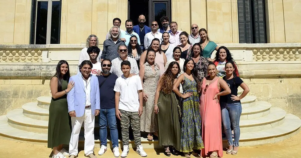 Una nutrida representación de los artistas que participarán en los distintos espectáculos del programa Caló Flamenco a la Fiesta de la Bulería han participado hoy en la grabación de un spot promocional del evento que se ha realizado en las instalaciones de la Real Escuela Andaluza del Arte Ecuestre.