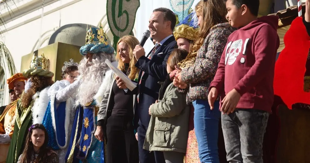 Los Reyes Magos y el cortejo Real fueron recibidos en el Atrio del Ayuntamiento por el alcalde, David de la Encina, y los miembros del equipo de Gobierno y se procedió a la adoración del Niño Jesús.