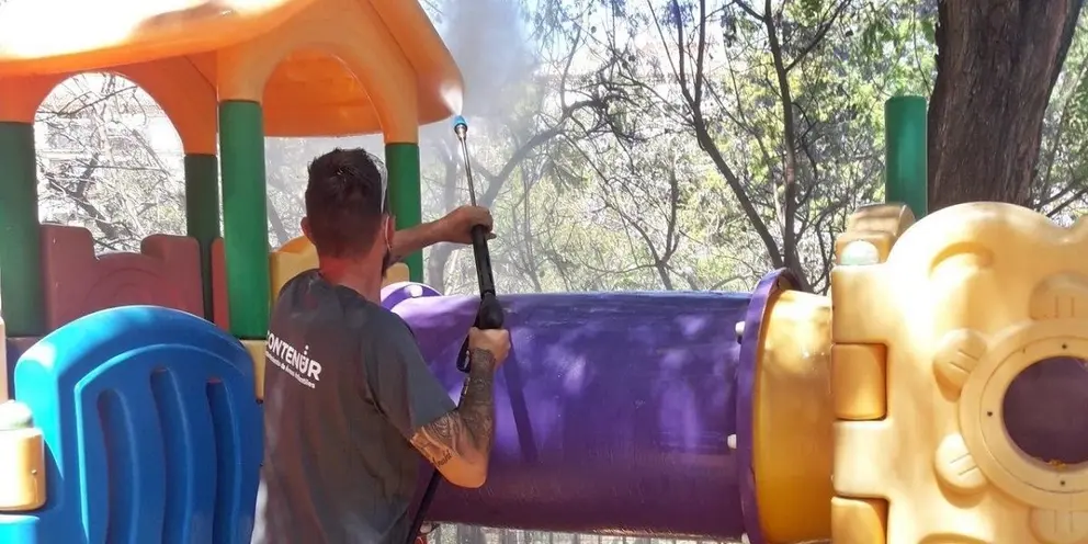 Para ello, se dispondrá de un equipo material integrado por 12 equipos hidrolimpiadores, dotados de productos bactericida-fungicida para actuar en todos los elementos, tanto los estructurales como las áreas de contacto. Por su parte, el equipo humano lo conformarán 12 operarios de la empresa de conservación y mantenimiento de áreas de juegos infantiles y trabajadores de la delegación de Limpieza.
