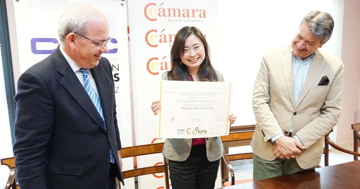 La Cámara de Comercio de Jerez y la Confederación de Empresarios de la provincia de Cádiz, con la colaboración del Consejo Regulador de los Vinos de Jerez, han llevado a cabo el viernes 16 de marzo la entrega del premio a la mejor iniciativa empresarial organizada en el marco de la Sherry Week 2017 a la empresaria china Mónica Zhou, fundadora de la empresa Shangai Talentum Trading.