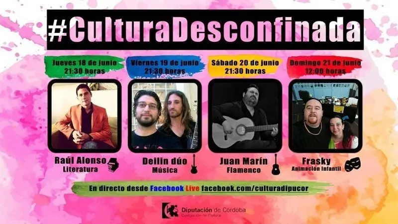 ‘Cultura desconfinada’ se compone de una serie de directos que con carácter semanal (de jueves a domingos) darán visibilidad a los distintos ámbitos de la cultura, abarcando desde la literatura a las artes escénicas, la música, el flamenco y propuestas infantiles.