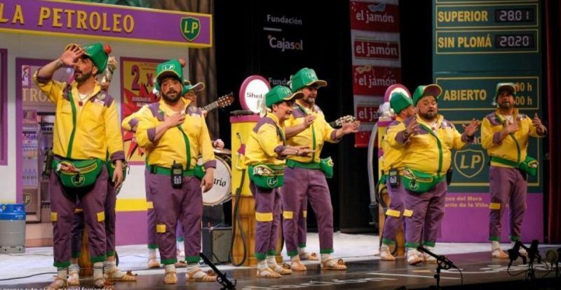 Comentario: Una de las actuaciones más esperadas en la modalidad de chirigota tras su pase de preliminares es la de la chirigota de El Sheriff y sus 'niños de la Petróleo'. Un guiño al personaje viñero en forma de gasolinera. En la presentación juegan con el tipo y hacen guiños gaditanos. Con cameo de Faly Vila en el lavadero. No pierden la esencia en el pasodoble, ni su meceo caletero. La primera letra va para las conductas machistas al volante y la segunda a los que ellos llaman 'los ofendiditos'.