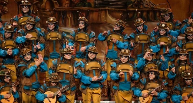 Comentario: Pase de semifinales del Concurso de Agrupaciones, para el coro La colonial. Una colonia de hormigas que se presentan cantando a Cádiz, la colonia más pura y guerrera.
