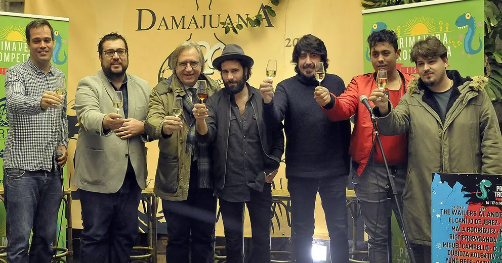 Al acto de presentación, que ha tenido lugar en Damajuana, han asistido también el diputado provincial Jaime Armario, el promotor del festival, Micki Gutiérrez, y algunos representantes de los artistas jerezanos que participarán en el Festival como el Canijo de Jerez o Furia Trinidad.