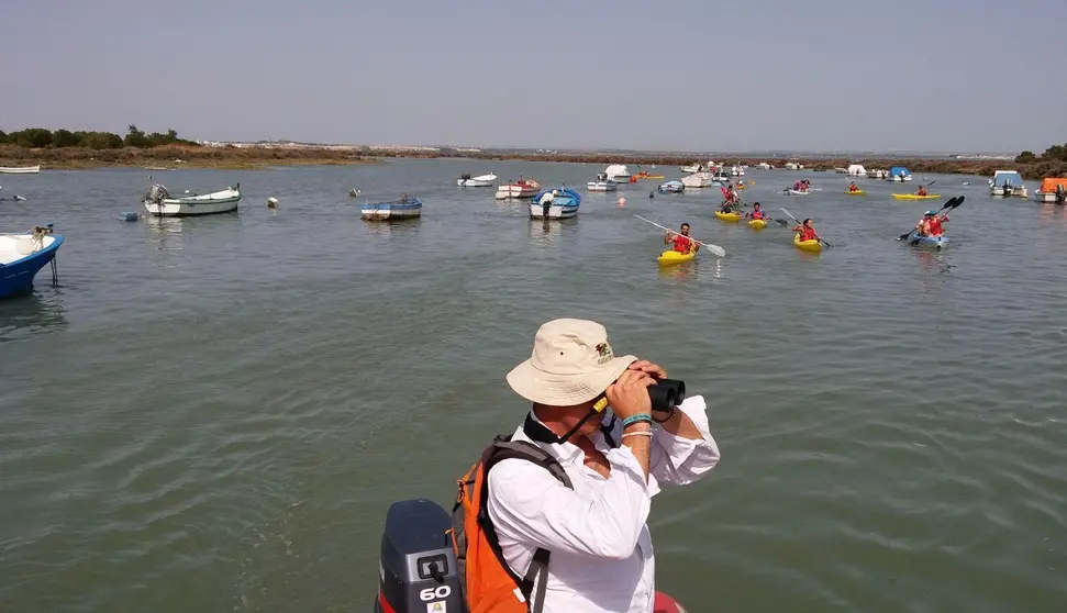 La ONG retoma su actividad de rutas en kayac por este paraje de la Bahía de Cádiz