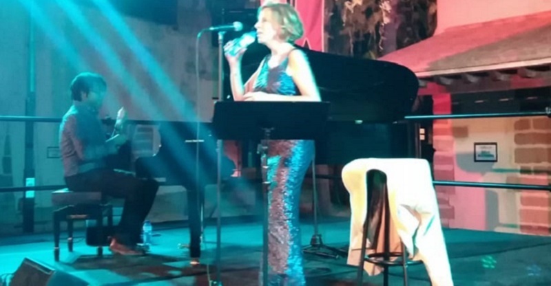 Sobre las 22:10 horas salió a la escena impecable con un traje largo en tono negro con brillos y acompañada al piano por las manos magistrales de Iván Melon Lewis. Dio las buenas noches y nos pregunto ¿Qué tal estábamos? Igualmente comentó que éramos unas personas afortunadas por disfrutar de un marco tan bonito y agradable incluso hasta corriendo una pequeña brisa.