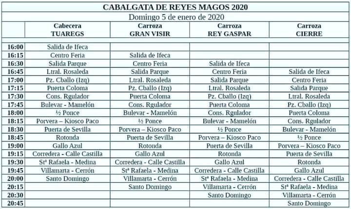 Sus Majestades saldrán entorno a las 16:30 horas del Parque González Hontoria y terminaran con la Adoración al Niño Jesús a las 21:00