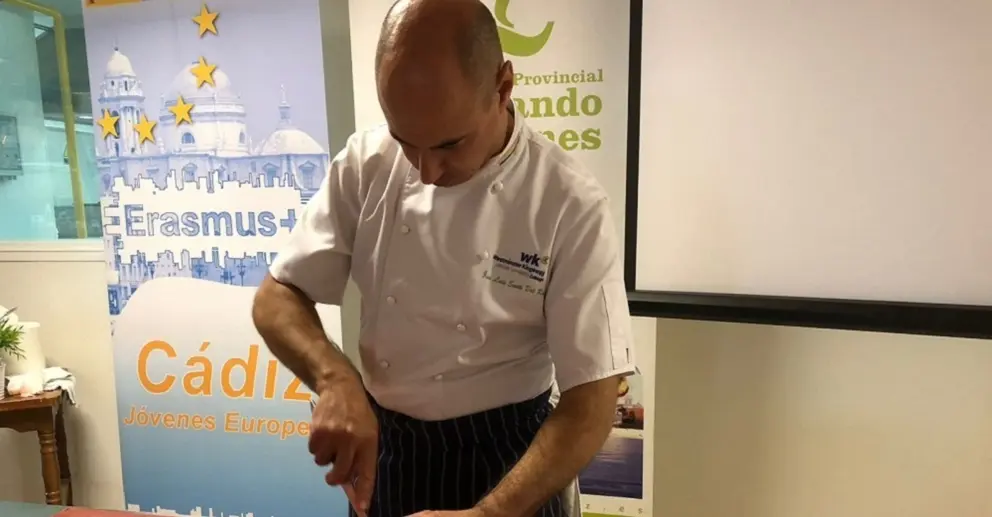 El chef y profesor de cocina en Westminster Kingsway Collage José Luis Souto del Río está impartiendo durante estos días una formación especial a los alumnos del programa Eramus+ 2017 que desarrolla el Instituto de Fomento, Empleo y Formación (IFEF) del Ayuntamiento de Cádiz junto al Consorcio para la movilidad, constituido por diez centros escolares.