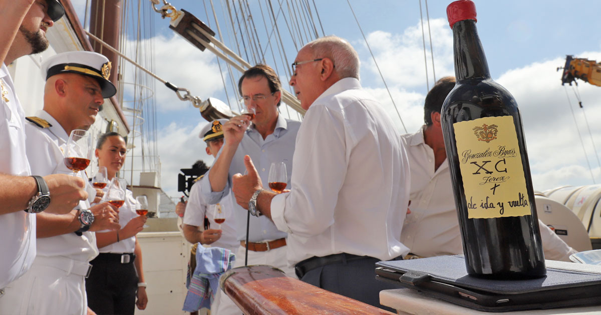 Tras 182 días recorriendo los mares, esta joya de colección ha alcanzado el súmmum y será embotellada por González Byass, que recupera la tradición histórica de embarcar vinos en las largas travesías y rinde homenaje a los marineros que dieron la vuelta al globo por vez primera en el siglo XVI.