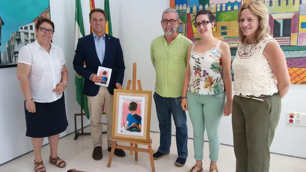 El alcalde David de la Encina y la teniente de alcalde de Educación Ana Maria Arias han conocido esta mañana de la mano del colegio Luisa de Marillac el cartel de la próxima edición del certamen de Relatos Cortos Sor Aguilar, organizado por el propio centro educativo con la colaboración del Ayuntamiento.