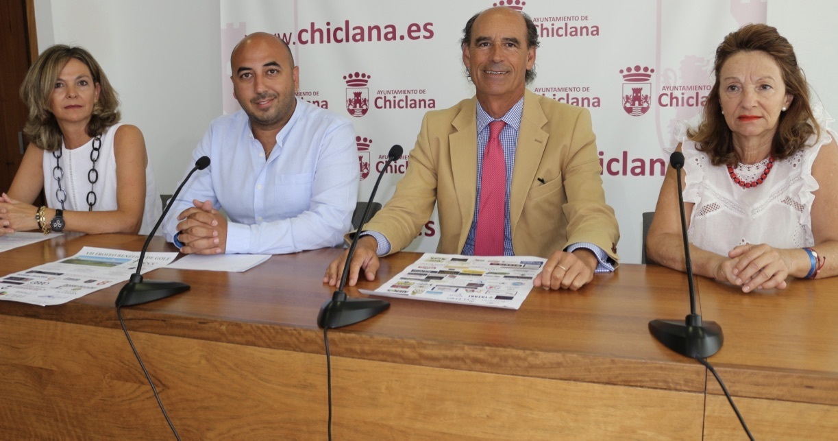 El delegado municipal de Fomento, Adrián Sánchez; el director del Club de Golf Novo Sancti Petri, Rafael Hernández; la presidenta de la Asociación Española Contra el Cáncer en Chiclana, Isabel Montero, y una de las responsables de organización, Carmen Ponce, han presentado la séptima edición del Trofeo Benéfico de Golf, que se celebrará el próximo domingo 29 de julio en las instalaciones del Real Club de Golf Iberostar Novo Sancti Petri. Un año más, la recaudación de esta competición irá destinada a la Asociación Española Contra el Cáncer. Además, se ha establecido un ‘Hoyo 0’ para todos aquellos que quieran colaborar sin participar en el torneo. Cabe reseñar que en ediciones anteriores, esta recaudación ha superado los 10.000 euros, llegando el pasado año a los 15.000 euros.
