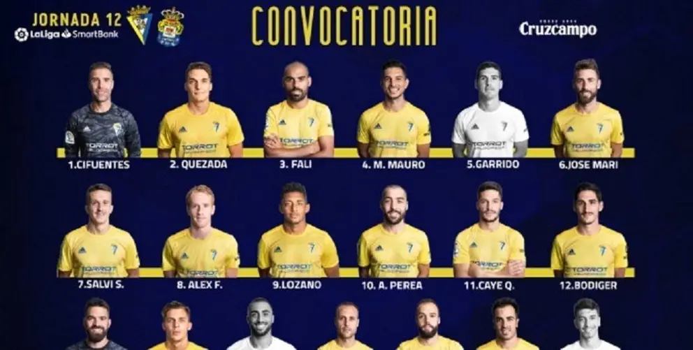 Cifuentes, David Gil, Iza, Marcos Mauro, Fali, Juan Cala, Quezada, Espino, Bodiger, Sergio González, José Mari, Edu Ramos, Álex, Salvi Sánchez, Iván Alejo, Perea, Jurado, Nano Mesa, Choco Lozano y Caye Quintana.