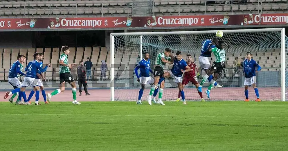 Aun así, las ocasiones escasearon en la primera parte. Amin, con un disparo desde fuera del área, fue el primer en intentarlo, pero encontró una buena respuesta de Dani Rebollo. Antes de sobrepasar el primer cuarto de hora, Jacobo cabeceaba alto un buen centro desde la izquierda.