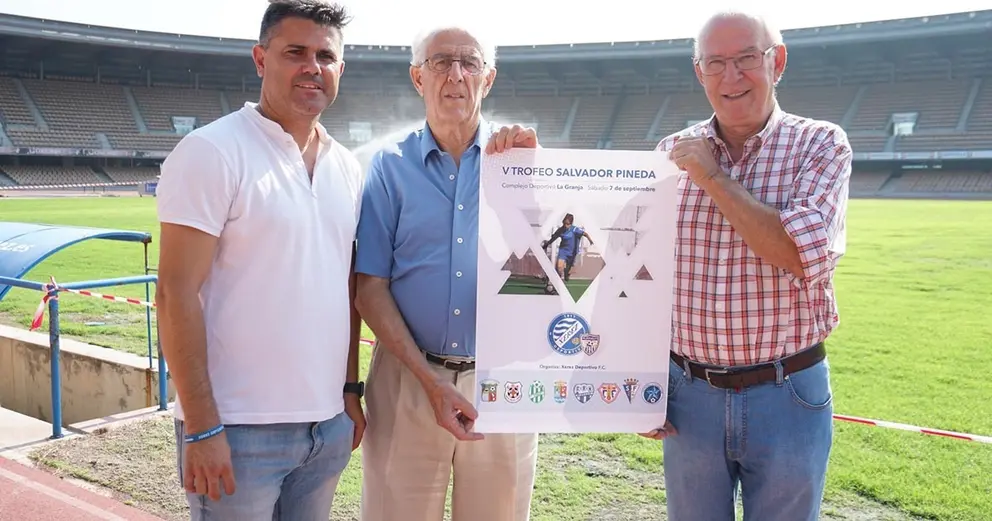 El director de cantera, Juan Carlos Ramírez, junto al directivo Tomás Villena, han dado a conocer esta mañana los detalles de la quinta edición del Trofeo de Cantera Salvador Pineda que se celebrará este sábado en el Complejo Deportivo de la Granja. Por quinta temporada, el Xerez Deportivo FC vuelve a organizar este clásico del verano, homenajeando la figura de Salvador Pineda, cuyo nombre siempre ha estado ligado al fútbol base de la ciudad. En esta ocasión, un total de ocho equipos participarán en una jornada maratoniana que comenzará a las 9:30 horas y que finalizará a las 23:00 horas. Sin duda, una buena oportunidad para disfrutar de la cantera y de todos las jóvenes promesas que tratarán de alzarse con el trofeo en sus respectivas categorías.