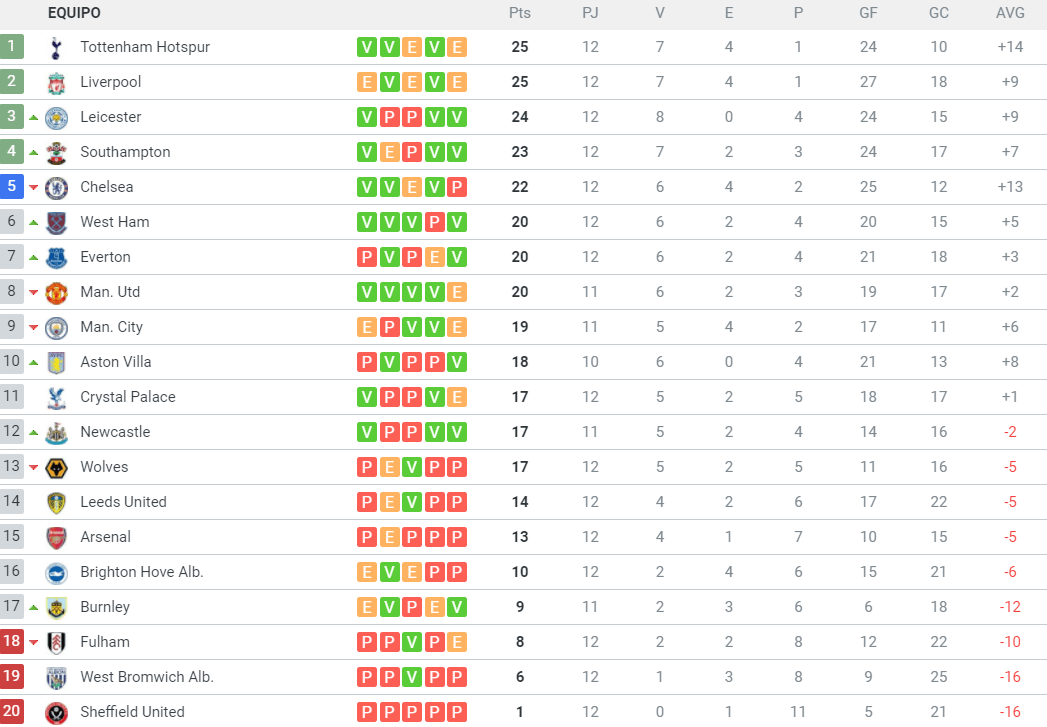 La Premier League vuelve a tener la igualdad de siempre. Transcurridas 12 jornadas de Liga, hasta nueve equipos tienen posibilidades reales de hacerse con el título de liga al final del campeonato.