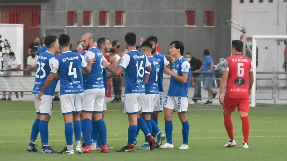 El once titular del Xerez DFC lo formaron César; Curro Rivelott, Juli Pendín, Basto, Beni; Adri Rodríguez, Baeza, José Antonio; Javi Valenzuela, Jacobo, y Antonio Sánchez.