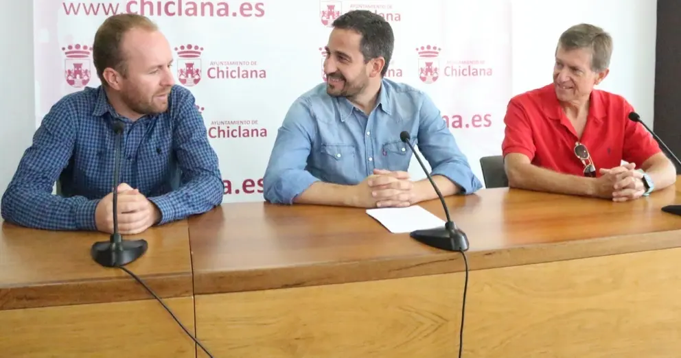 El delegado municipal de Deportes, José Manuel Vera; el presidente del Club Atletismo Chiclana, Agustín Leal, y el representante de la Fundación Vicente Ferrer, Jorge Garret, han presentado la doble cita deportiva que se desarrollará el próximo 15 de julio en la playa de La Barrosa, como son la XVII Carrera Popular Playa de la Barrosa y la IV Travesía Brazadas Solidarias. Así pues, la primera de ellas será también ‘Homenaje al Atleta Rafael Carmona Páez’, dará comienzo a las nueve y media de la mañana, estando ubicadas la salida y la meta frente a la Plaza de las Banderas del paseo marítimo.