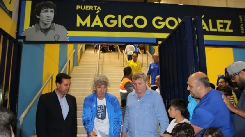 Jorge 'Mágico' González ya tiene su puerta en el estadio Ramón de Carranza. Pasadas las nueve de la noche de ayer lunes, y rodeado de medio millar de cadistas, desplegaba la lona que tapaba la puerta número 6 cuyo nombre pasa a ser 'Mágico' González.