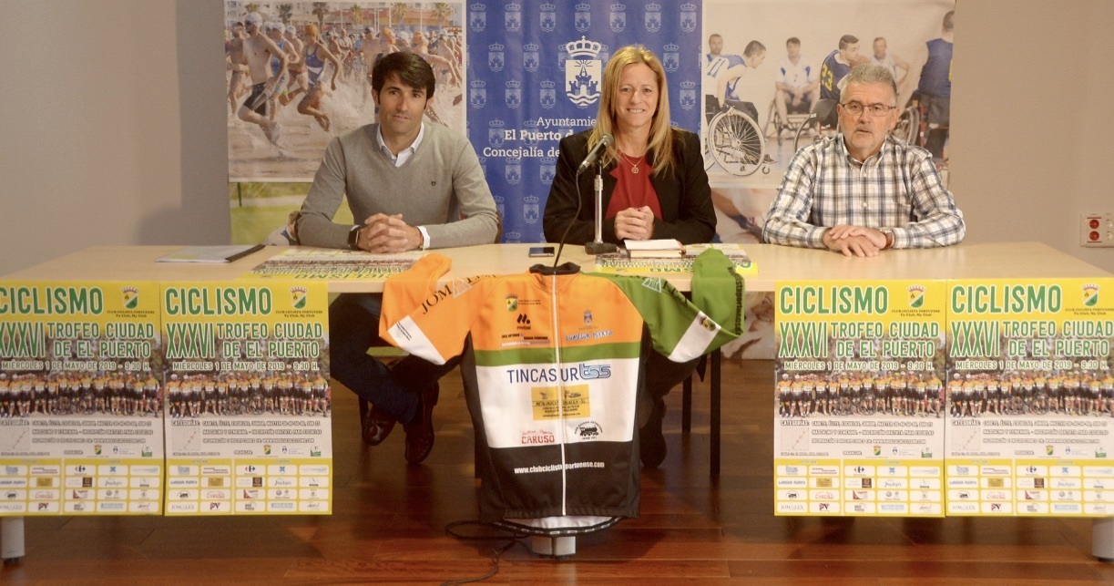 La Concejala de Deportes, Ana María Arias presentó ayer la XXXVI edición del Trofeo Ciudad de El Puerto junto con el presidente y el secretario del Club Ciclista Portuense, Álvaro García y Juan José García, respectivamente.
