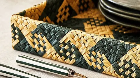 Cesta trenzada con diseño a contraste