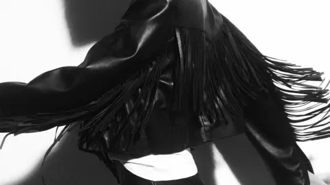 Es un accesorio muy bonito y elegante sin estampado y con un cierre rápido, seguramente con imán.