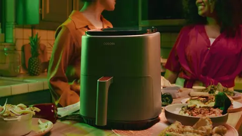Se trata de un equipo que funciona mediante conexión a la red y que sirve para freír alimentos sin utilizar aceite, empleado en su defecto aire caliente. Cuenta con una potencia de 2000 W y se ha elaborado en plástico, con medidas equivalentes a 38,8 x 38,8 x 36,7 cm y un peso de 5,56 kg.