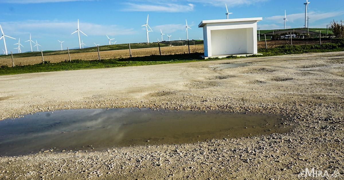No. Los vecinos están hartos, sobre todo por dejar el carril sin arreglar, con boquetes y sin luz. Hay siete farolas, y las siete estropeadas, una vergüenza. Tengo papeles con peticiones al Ayuntamiento desde que los empecé a pedir en 2016. Estamos en 2019 y estamos no igual, sino peor. Los boquetes son cada vez más grandes, y cada vez que llueve se ponen peor. El acceso a la barriada está asfaltado hasta la mitad. Además, en la parada de autobús se forma una laguna cada vez que llueve, siendo imposible que los niños puedan montarse al autobús sin meter los pies en el charco, y encima sin luz, a oscuras. Es como vivir en un país tercermundista.
