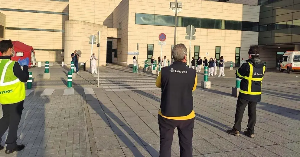 Según ha informado Correos en una nota de prensa, el personal del centro sanitario se unió, asimismo, a los aplausos de este pasado miércoles desde la entrada, "convirtiéndolo en un homenaje mutuo, en esta iniciativa que se ha repetido en muchos puntos de España".