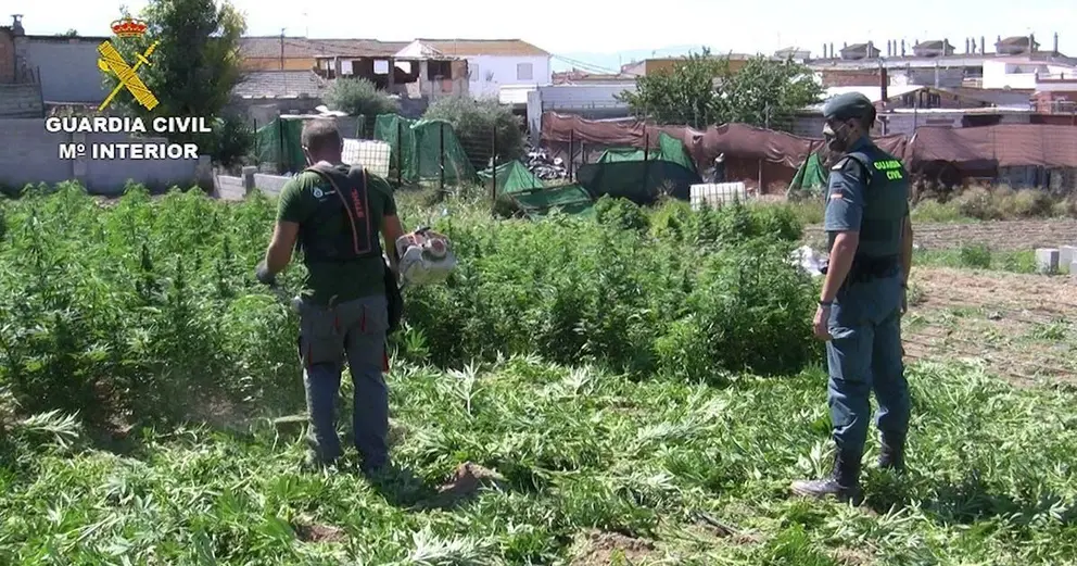 Al amanecer del día 9, la Guardia Civil comprobó que existían 14 parcelas de terreno ocupadas ilegalmente en las que crecían 10.750 plantas de cannabis sativa de distinto tamaño y estaban valladas y ocultas a la vista con tela de rafia. Además, en cada parcela había un dispositivo de riego por goteo.