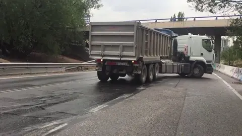 Tremendo susto el que se han llevado los conductores que circulaban por la carretera A-317 a la altura de la localidad granadina de Huéscar después de que un camión se haya quedado atravesado en plena vía para asombro de los afectados.