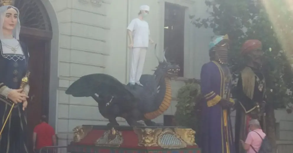 La tarasca, con mascarilla y vestida de sanitaria 83 años después