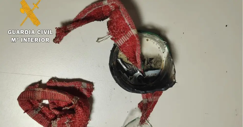 Cuando la patrulla llegó pocos minutos después al lugar, los agentes comprobaron que alguien había arrojado un artefacto incendiario contra una farola de la plaza. Había restos de este artefacto junto a la farola, con trozos de cristal, la tapadera y un trozo de tela que olía a gasolina.