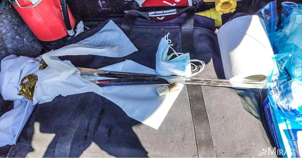 Cuando los agentes llegaron a la vivienda, observaron a un individuo que supuestamente "portaba una espada" y estaba "agrediendo a otras dos personas", mientras éstas intentaban "defenderse del ataque".