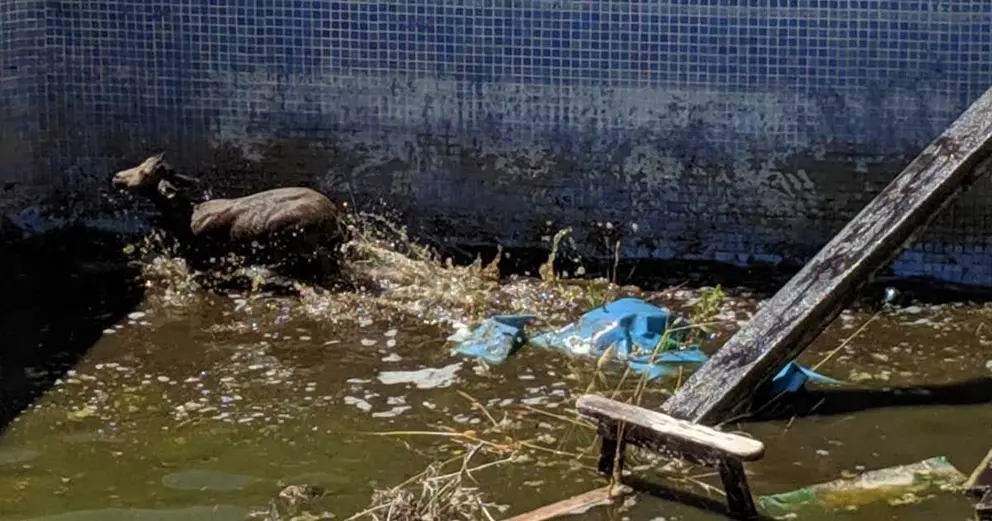 Los bomberos lograron sacar al animal a mano de la piscina que se encontraba semivacía