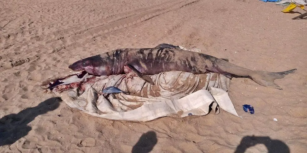 Aparece un tiburón peregrino de más de tres metros en una playa de Andalucía