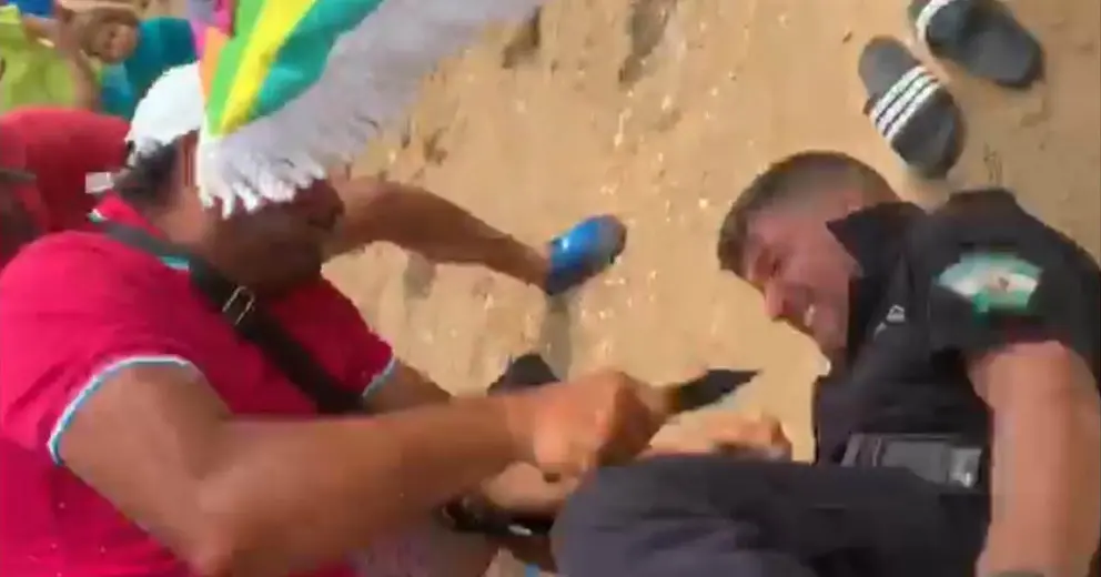 El presunto autor y dos personas más ya se encuentran detenidos. Además de herir con el arma blanca al jefe de la policía local, intentó mientras era reducido, apuñalar a otros dos.