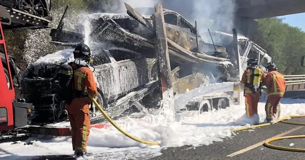 Por su parte, desde el Consorcio de Bomberos han indicado que interviene en la extinción del incendio del camión, que transporta seis vehículos y ocurrido cerca de la salida de Villablanca, nueve bomberos y siete vehículos de los parques de Ayamonte y Punta Umbría.