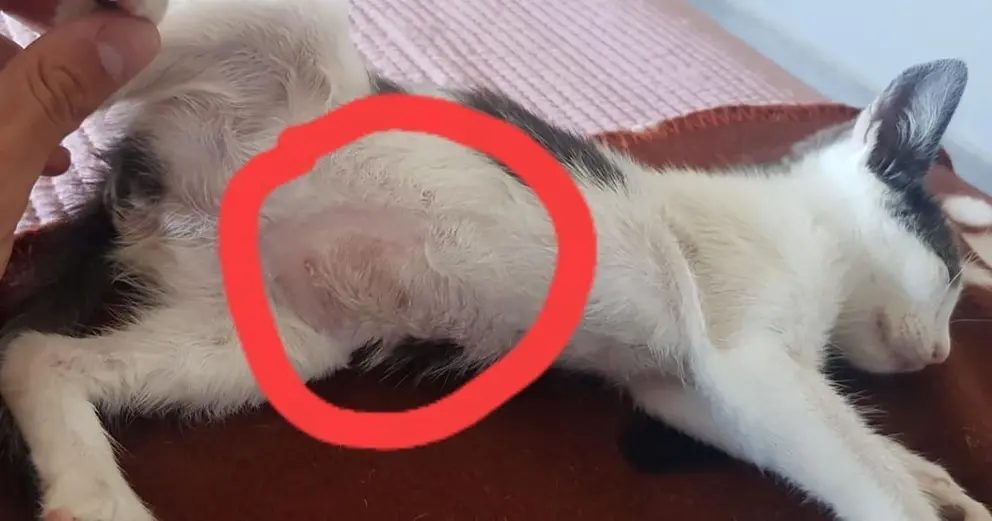 Después de cinco días curándola, tras haberla valorado en el centro veterinario Animalvetx El Saladillo (Huelva) para desparasitarla, le han diagnosticado una hernia. La misma le hace tener la vejiga sacada, motivo principal por el que necesita ser operada de urgencia al no ser capaz de hacer orinar. De no cambiar su situación, la felina podría morir.
