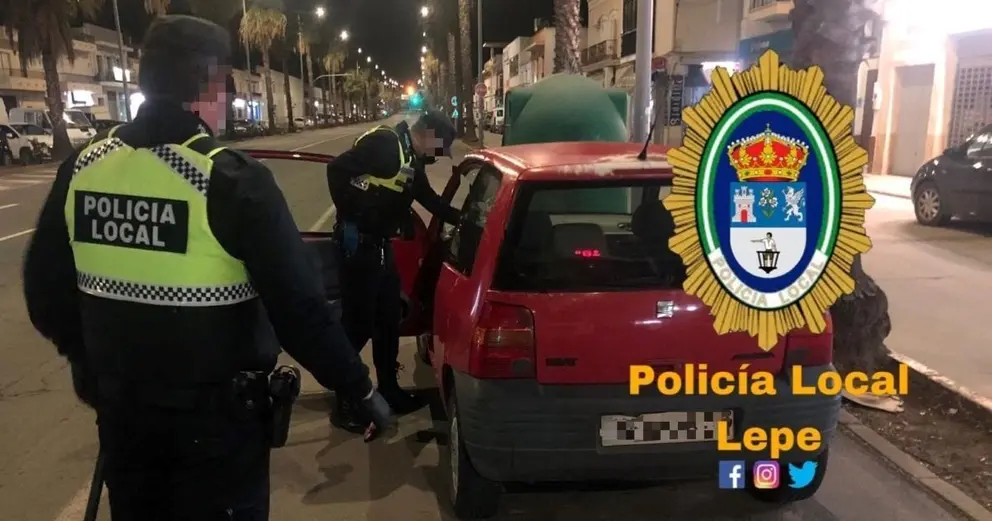 La Policía Local de Lepe (Huelva) ha interceptado a un hombre de 31 años, vecino de la localidad, que conducía cometiendo varias ilegalidades en pleno estado de alarma