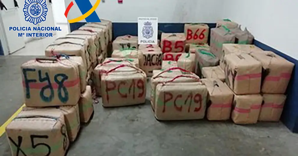 Agentes de la Policía Nacional y funcionarios de la Agencia Tributaria, en una operación conjunta, han incautado dos toneladas de hachís y detenido a tres personas en una operación contra el narcotráfico en Huelva. La droga, repartida en 61 fardos de arpillera, fue localizada en el interior de una “guardería”. La operación se enmarca en el Plan Funcional “Seguridad Meridional”, plan de choque establecido contra el narcotráfico en el extremo sur peninsular.