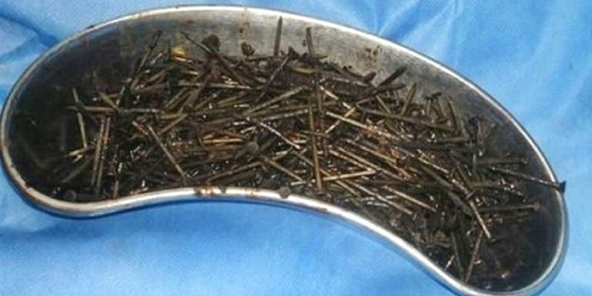 Extraen 122 clavos y otros objetos afilados del estómago de un paciente