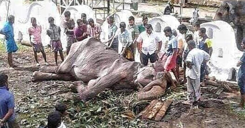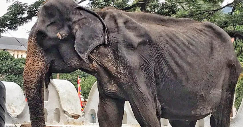 La elefanta de 70 años de edad y gravemente enferma, de nombre Tikiri, que ha sido obligada a trabajar en un festival en Sri Lanka y cuyas fotos han sido virales en todo el mundo, ya no se sostiene en pie y ha caído desplomada.