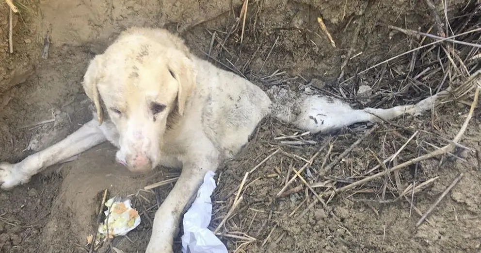 Encuentran a un perro vivo semienterrado en un barranco