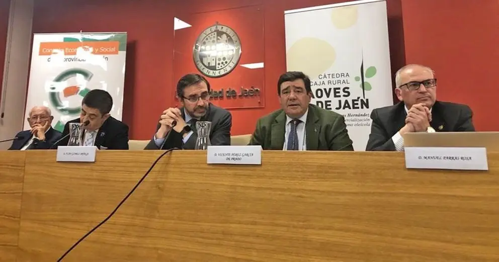 El secretario general de Agricultura, Vicente Pérez, ha participado en las jornadas 'La PAC Post 2020 y la oleicultura', que se celebra en la Universidad de Jaén dentro de la Cátedra Caja Rural de Jaén-José Luis García-Lomas de Economía, Comercialización y Cooperativismo Agrícola.