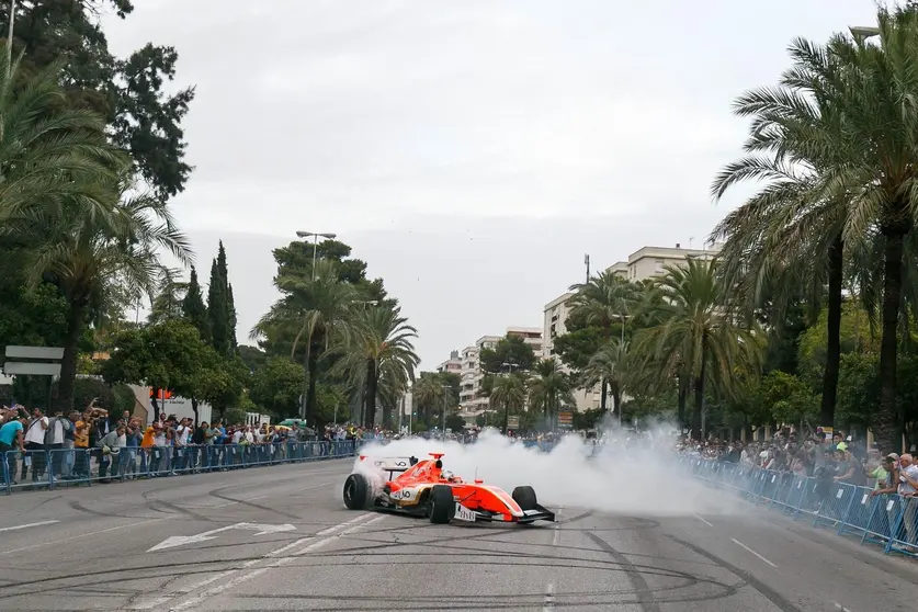 El númeroso público allí congregado tuvo ocasión de ver y escuchar de cerca el sonido atronador de este monoplaza de más de 500 caballos pilotado por el mejicano Alfonso Celis, realizando aceleraciones, trompos y quemadas de rueda que hicieron las delicias de los espectadores.