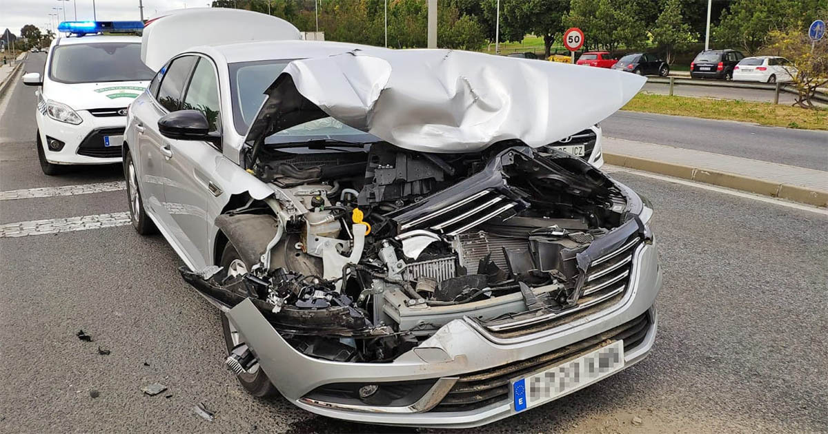 Un turismo frena al llegar a la glorieta para realizar el ceda el paso a los vehículos que circulan por la rotonda, deteniéndose por completo. Los vehículos que circulan por detrás, intentan frenar pero uno a uno van impactando con el delante. El último en colisionar ha sido el más afectado.