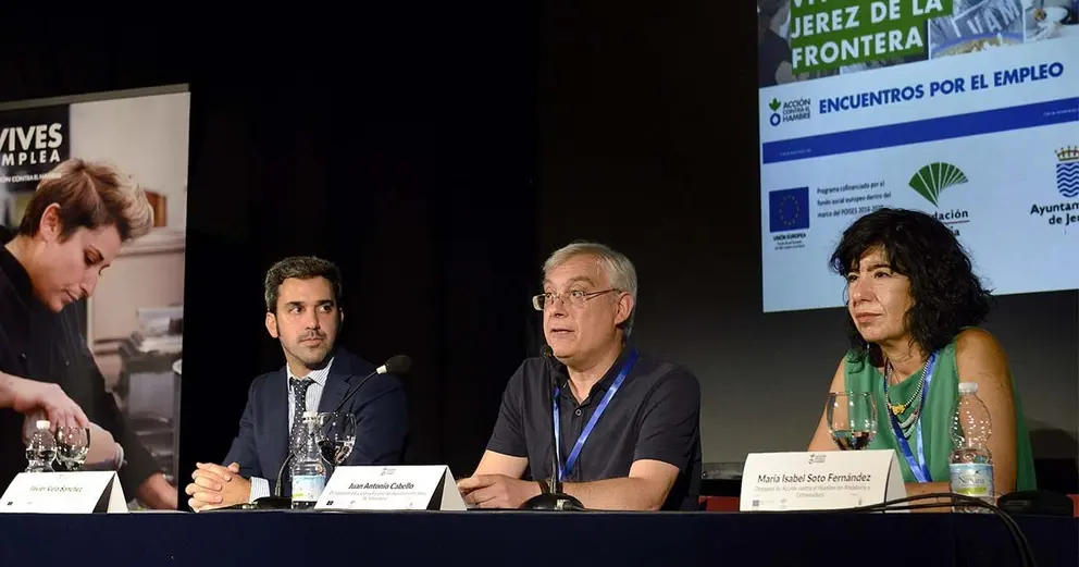 El delegado ha participado hoy junto con Isabel Soto, delegada de Acción contra el Hambre en Andalucía y Extremadura, y Javier Vela, responsable de la Fundación Unicaja en la provincia, en la sesión de apertura de las jornadas 'Encuentros por el empleo', que ha impulsado la organización, con colaboración municipal, en la Sala Compañía.
