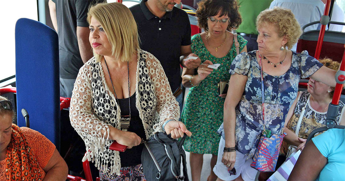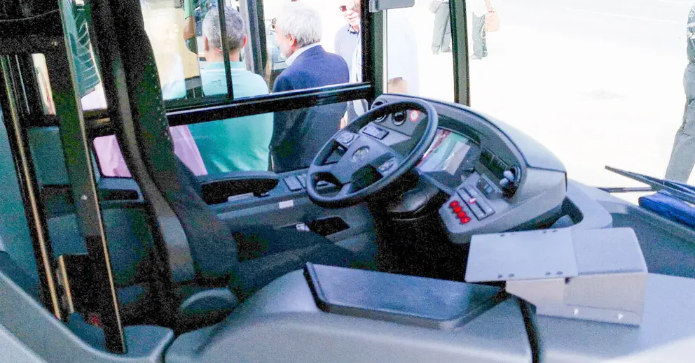 Mamen Sánchez subida al nuevo autobús municipal para la realización de una foto para promocionar su gestión